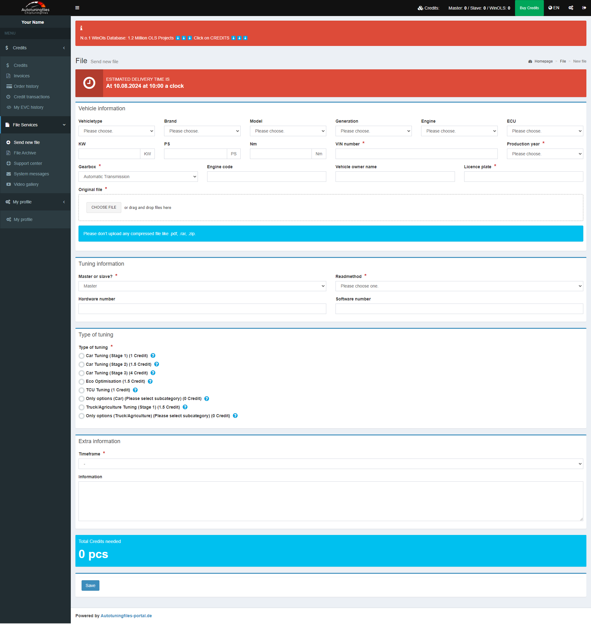 Maximize Your Vehicle's Performance with Expert Support and Advanced Tuning Options By registering for free on Autotuningfiles.de, you'll gain access to our comprehensive portal, where you can easily navigate the process from purchasing credits to uploading files and receiving customized tuning files from our specialized team.